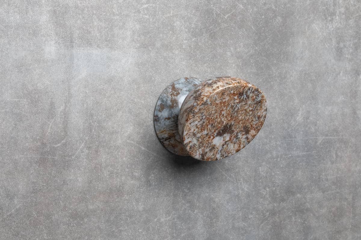 Luxe, eigentijdse wandkapstophaken volledig van bakeliet (voorzien van een laagje om variatie in de haken aan te brengen): de Dob Collection van House of Bakelite.